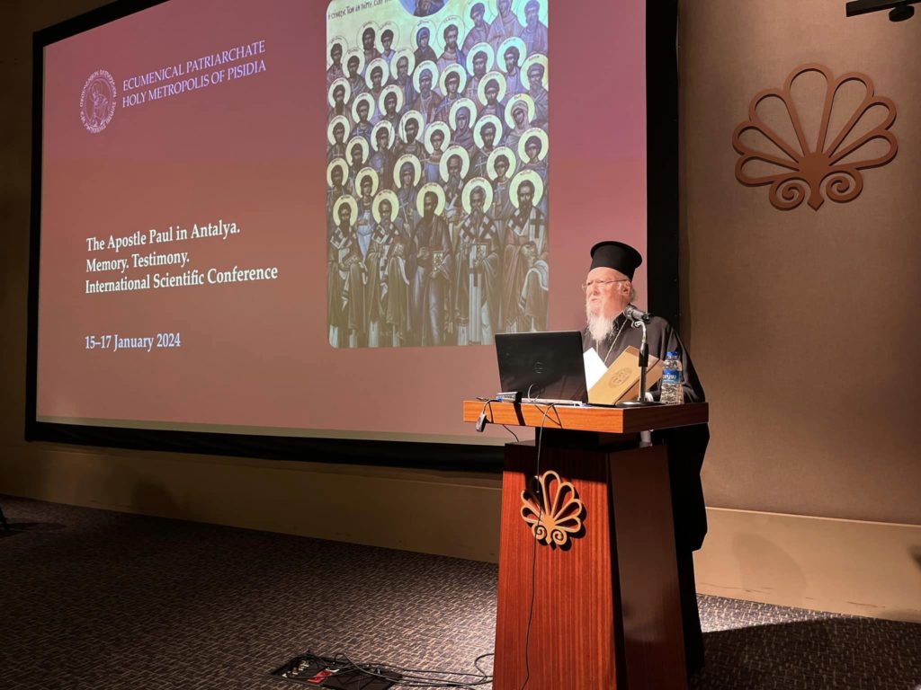 O Οικουμενικός Πατριάρχης κ.κ. Βαρθολομαίος, τη Δευτέρα, 15 Ιανουαρίου 2024, κήρυξε την έναρξη του Διεθνούς Επιστημονικού Συνεδρίου “Ο Απόστολος Παύλος στην Αττάλεια. Μνήμη. Μαρτυρία”, το οποίο τελεί υπό την αιγίδα Του και διοργανώνει η Ιερά Μητρόπολη Πισιδίας στην πόλη της Ατταλείας.