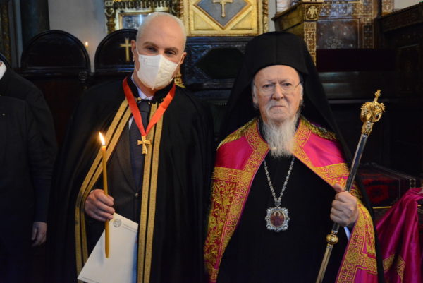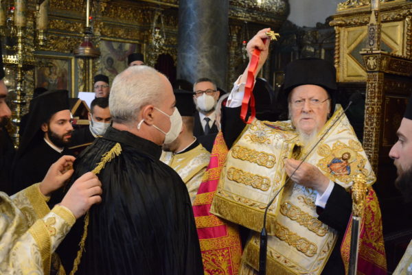 Αμέσως μετά ο Παναγιώτατος χειροθέτησε τον Εντιμολ. κ. Δημήτριο Χρυσοχόου, Καθηγητή του Τμήματος Πολιτικής Επιστήμης και Δημόσιας Διοίκησης στο Εθνικό και Καποδιστριακό Πανεπιστήμιο Αθηνών, σε Άρχοντα Ρεφερενδάριο του Οικουμενικού Θρόνου.