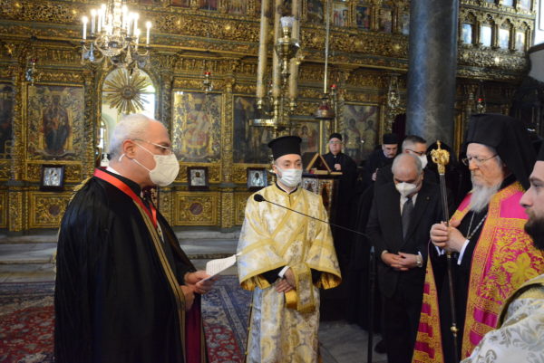 Τον Παναγιώτατο προσφώνησε ο Άρχων της Μ.τ.Χ.Ε., Eντιμολ. κ. Αθανάσιος Αγγελίδης, Πρόεδρος της Εφορείας της Πατριαρχικής Μεγάλης του Γένους Σχολής.