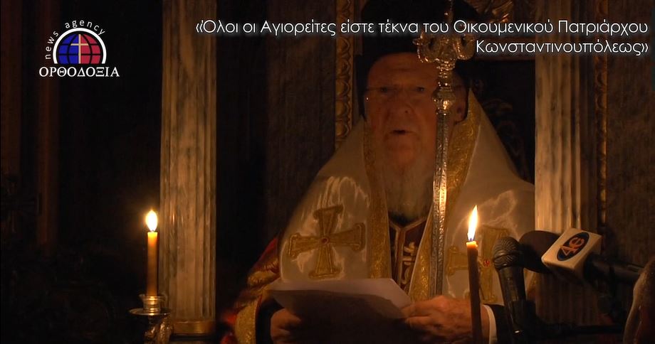 «Όλοι οι αγιορείτες είστε τέκνα του Οικουμενικού Πατριάρχου Κωνσταντινουπόλεως. Όλοι οι αγιορείτες είστε τμήμα της καρδιάς του Πατριάρχου σας, ο οποίος καθ’ έκαστην αγωνιά και προσεύχεται για την προκοπήν και σωτηρία των ψυχών σας. Όλοι οι αγιορείτες ανεξαιρέτως είστε ευπρόσδεκτοι εν Φαναρίω, για να ιδείται εκ του σύνεγγυς τον βίον και την πολιτεία της μαρτυρικής μητρός εκκλησίας να κοινωνήσετε μετά των αλάλητων στεναγμών ημών, μετά των μόχθων και θυσιών υπέρ του Χριστού αλήθειας», είπε χαρακτηριστικά ο Παναγιώτατος.