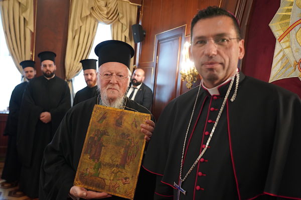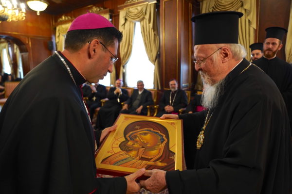 Ο Παναγιώτατος δήλωσε πεπεισμένος ότι ο παριστάμενος νέος Επίσκοπος θα προσφέρει πολλά στους ΡΚαθολικούς πιστούς στην Τουρκία, και του εξέφρασε τις πιο ειλικρινείς ευχές του για τη νέα διακονία του. “Είθε η χθεσινή χειροτονία να χρησιμεύσει ως σύμβολο ενότητας, ενισχύοντας μια βαθύτερη κατανόηση μεταξύ των Εκκλησιών και των κοινοτήτων μας. Καθώς συνεχίζουμε στον κοινό δρόμο της πίστης και του διαλόγου μας, ας παραμείνουμε προσηλωμένοι στους δεσμούς που μας ενώνουν, αντλώντας δύναμη από τις κοινές ρίζες που θεμελιώνουν τη χριστιανική μας μαρτυρία στον σύγχρονο κόσμο”, τόνισε ο Πατριάρχης, ο οποίος προσέφερε μία εικόνα της Θεοτόκου στο Επίσκοπο κ. Antuan Ilgit. Εκείνος με την σειρά του, προσέφερε στον Παναγιώτατο μία παλαιά Ορθόδοξη εικόνα της Ζωοδόχου Πηγής, εκφράζοντάς του για μία ακόμη φορά τον σεβασμό του και τις θερμές ευχαριστίες του για την παρουσία του στην τελετή χειροτονίας του.