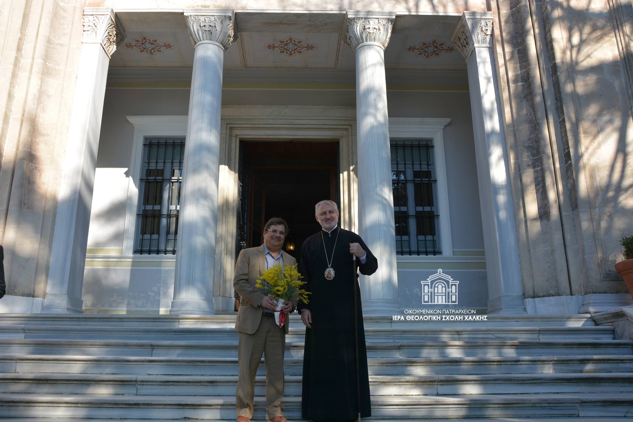Τη Θεολογική Σχολή της Χάλκης επισκέφτηκε ο ομογενής Γερουσιαστής του Αμερικανικού Κονγκρέσου κ. Γκας Μπιλιράκης, συνοδευόμενος από τη σύζυγό του. Τον Γερουσιαστή υποδέχθηκε ο Ηγούμενος και η Αδελφότητα της Ιεράς Μονής. Ακολούθησε ξενάγηση στο Καθολικό, περιήγηση στους κήπους, υποδοχή στο Μεγάλο Συνοδικό, παρουσίαση του Νέου Συνοδικού και ξενάγηση στη Βιβλιοθήκη της Σχολής.