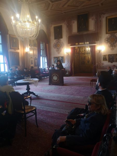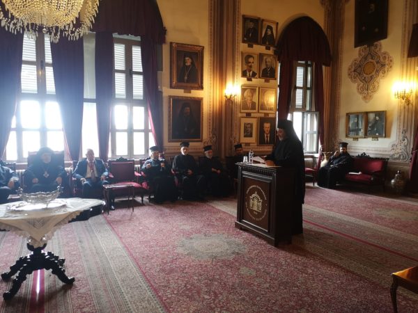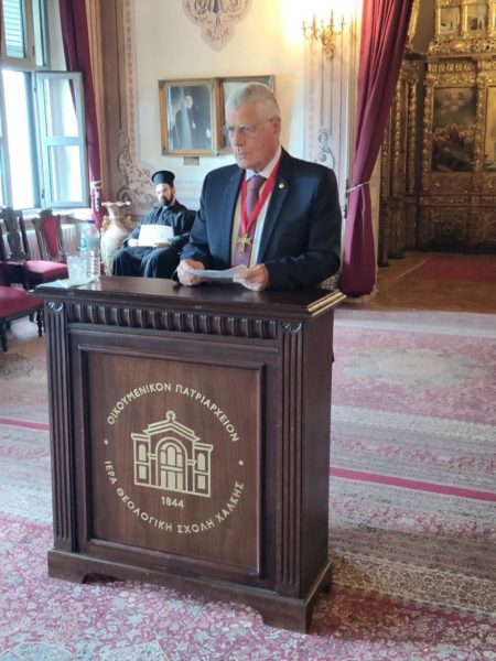 Κατόπιν χαιρετισμό απηύθυναν ο Πρόεδρος της Εστίας Θεολογων Χάλκης, ο προεξάρχων Αρχιερέας, Σεβασμιώτατος Μητροπολίτης Δέρκων, καθώς και ο εκπρόσωπος του Παναγιωτάτου, Σεβασμιώτατος Μητροπολίτης Μυριοφύτου κ. Ειρηναίος, ο οποίος διαβίβασε σε όλους τις Σεπτές ευχές του Πατριάρχη.