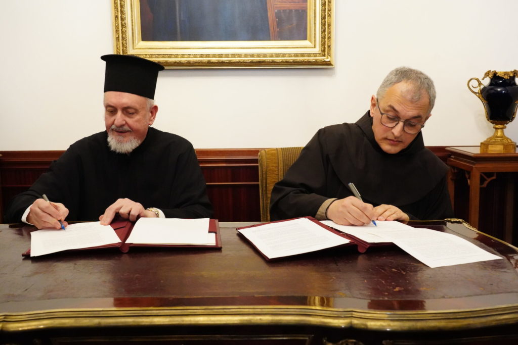 Αμέσως μετά την συνάντηση πραγματοποιήθηκε η επίσημη υπογραφή του συμφωνητικού παραχωρήσεως του Ναού στην Αίθουσα Αρχιερέων του Πατριαρχικού Οίκου. Το συμφωνητικό υπέγραψαν εκ μέρους της Μητρός Εκκλησίας, ο Σεβ. Μητροπολίτης Γέρων Χαλκηδόνος κ. Εμμανουήλ και, εκ μέρους των Φραγκισκανών, ο Οσιώτ. κ. Massimo Fusarelli.