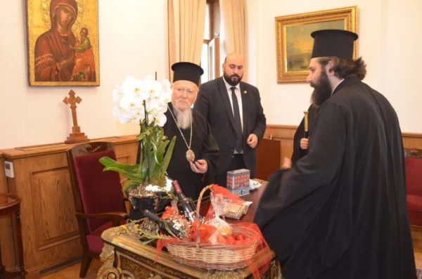 Τον Πατριάρχη προσφώνησε καταλλήλως ο υπεύθυνος της Γεωργιανής Κοινότητος π. Ilia Jinjolava και του πρόσφερε πασχαλινά δώρα, έκφραση του σεβασμού και της αγάπης των Γεωργιανών της Πόλεως προς τον Παναγιώτατο.
