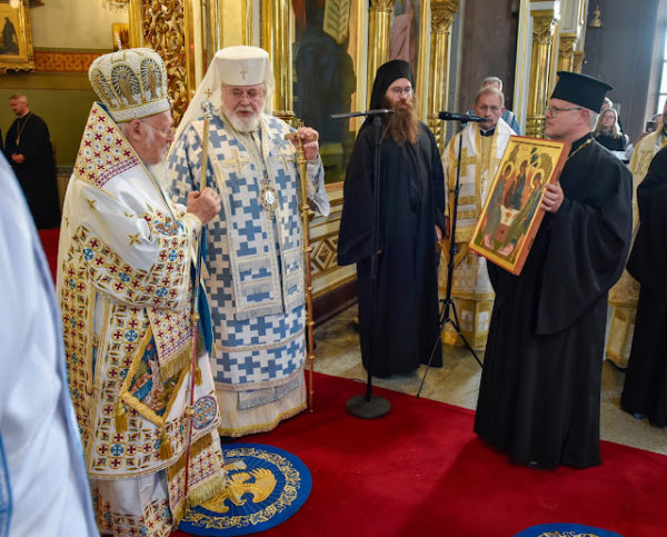 Πριν την απόλυση της Θείας Λειτουργίας ο Σεβ. Αρχιεπίσκοπος κ. Λέων προσέφερε αναμνηστικό δώρο για την Πατριαρχική επίσκεψη ενώ ο Οικουμενικός Πατριάρχης χειροθέτησε σε Πρωτοπρεσβυτέρους του Οικουμενικού Θρόνου δύο κληρικούς της Αρχιεπισκοπής Ελσινκίου.