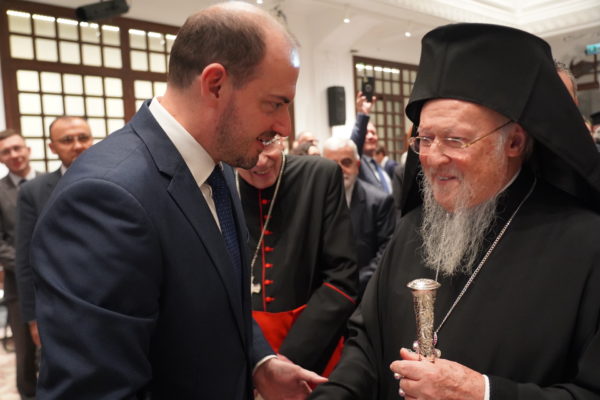Στην ομιλία του, ο Παναγιώτατος, καλωσόρισε εγκαρδίως όλους τους παρισταμένους και χαιρέτισε ιδιαιτέρως την παρουσία, και εφέτος, της επισήμου Αντιπροσωπείας της Εκκλησίας της Ρώμης: