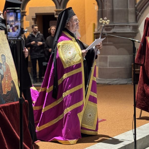 “Η παρουσία μας σήμερα εν τω μέσω υμών γεννά εις την καρδίαν μας την επιθυμίαν να εκφράσωμεν τα θερμά συγχαρητήριά μας, διά την αγάπην σας προς τον ποιμενάρχην σας και την τοπικήν Εκκλησίαν. Ο αδελφός άγιος Γαλλίας αναλίσκεται εις το έργον της διακονίας και της ποιμαντικής διά ποικίλων τρόπων, καθιστάμενος τοιουτοτρόπως λίαν αγαπητός τόσον εις ημάς, εις το Φανάρι, όσον και εις όλα τα μέλη της εν Γαλλία Ορθοδόξου Εκκλησίας. Διά του ευγενούς και φιλοκάλου χαρακτήρος του κερδίζει την αναγνώρισιν και τον σεβασμόν, η δε μέριμνά του διά την κατήχησιν και συστηματικήν επιμόρφωσιν του κλήρου και του λαού, αλλά και αι σχέσεις αδελφικής αγάπης και συνεργασίας προς τους λοιπούς χριστιανούς, Ρωμαιοκαθολικούς και Διαμαρτυρομένους, αποτελούν τεκμήριον του γνησίου ήθους αυτού. Επαινούμεν και συγχαίρομεν υμάς, πεφιλημένε άγιε αδελφέ, και εις τα πρόσωπα των μελών της Κοινότητος του Στρασβούργου αντικρίζομεν τα γνήσια και πιστά τέκνα της Εκκλησίας Κωνσταντινουπόλεως, της πασχούσης και αεί σταυρουμένης οικουμενικής Ρωμιοσύνης.” [Διαβάστε το πλήρες κείμενο της ομιλίας του Παναγιωτάτου ΕΔΩ]