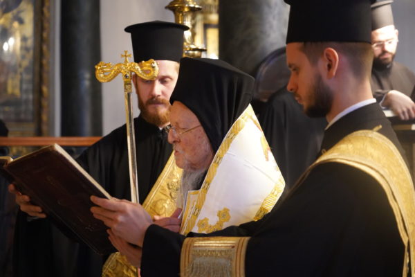 Ο Παναγιώτατος περιστοιχιζόταν από Αρχιερείς του Θρόνου, κληρικούς της Πατριαρχικής Αυλής, και προσκυνητές από το εξωτερικό, μεταξύ των οποίων όμιλοι εκπαιδευτικών και μαθητών από τη Νέα Πεντέλη Αττικής και την Αργολίδα, καθώς και όμιλος αστυνομικών από την Καρδίτσα και τα Τρίκαλα.
