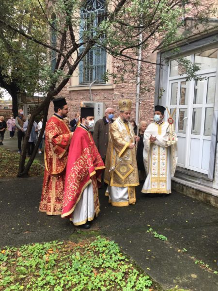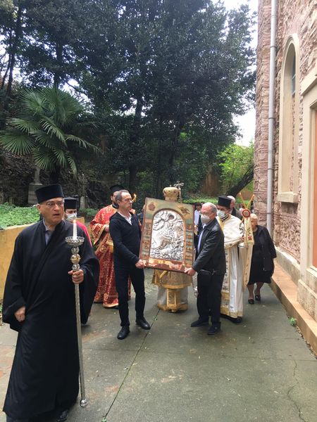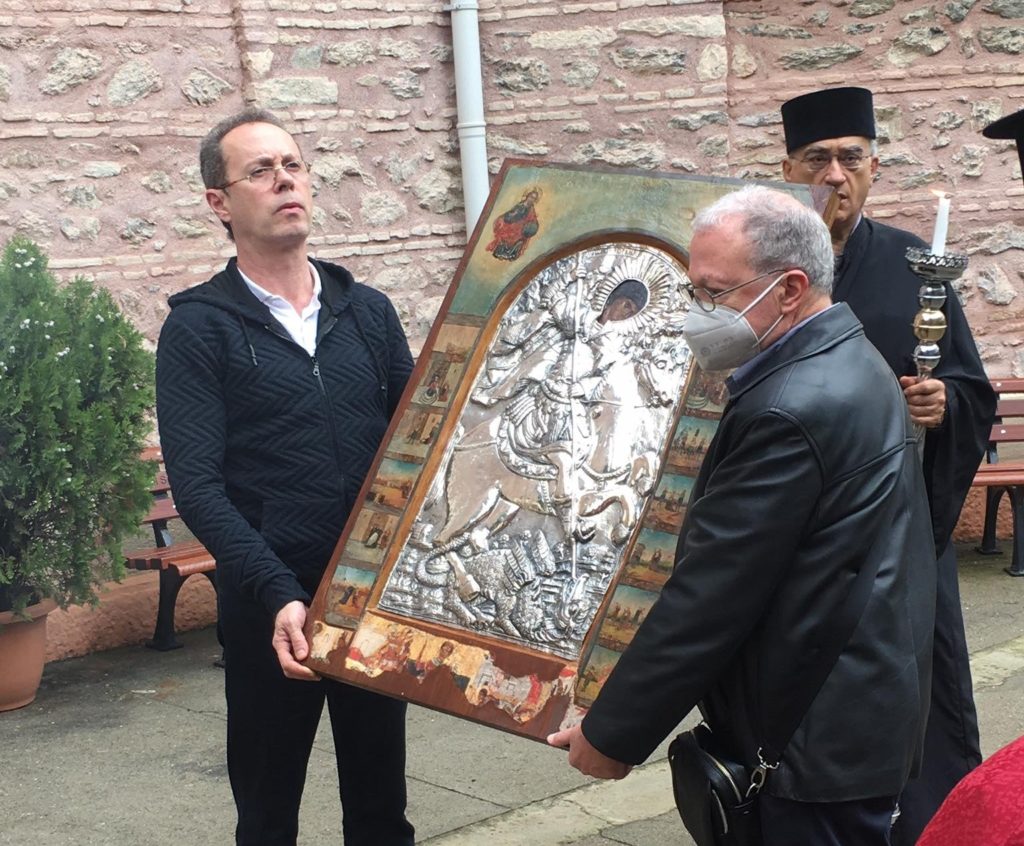 Την Τετάρτη επί τη ιερά μνήμη της Ανακομιδής των Ιερών Λειψάνων του Αγίου Μεγαλομάρτυρος Γεωργίου του Τροπαιοφόρου και εις ανάμνησιν της διασώσεως του προαστείου των Θεραπείων της Κωνσταντινούπολης από την καταστρεπτική πυρκαγιά τη θαυματουργική επεμβάσει του πολιούχου Αγίου, τελέσθη πανηγυρική Αρχιερατική Θεία Λειτουργία μετ’ αρτοκλασίας, απουσιάζοντος του Σεβ. Ποιμενάρχου Δέρκων κ. Αποστόλου, ο οποίος τελεί καθήκοντα Πατριαρχικού Επιτρόπου, προεξάρχοντος του Σεβ. Μητροπολίτου Προύσης κ. Ιωακείμ.