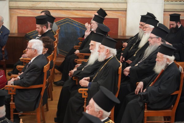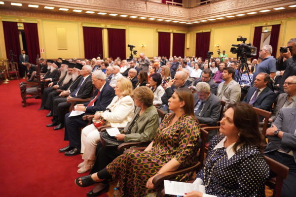 Στην εκδήλωση παρέστησαν πλήθος Ιεραρχών, ο υφυπουργός Εργασίας και Κοινωνικής Ασφάλισης κ. Βασίλειος-Πέτρος Σπανάκης, η Εξοχ. Πρόεδρος του Κόμματος “Πλεύση Ελευθερίας” κ. Ζωή Κωνσταντοπούλου, ο κ. Mustafa Somuncu, Γενικός Πρόξενος της Τουρκικής Δημοκρατίας στην Αθήνα, εκπρόσωποι των Ενόπλων Δυνάμεων και του Ακαδημαϊκού κόσμου και πυκνό ακροατήριο.