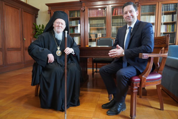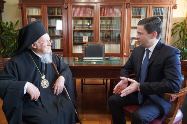Στη συνέχεια, ο Οικουμενικός Πατριάρχης μετέβη στο Γραφείο Εκπροσωπήσεως του Οικουμενικού Πατριαρχείου στην Αθήνα όπου συναντήθηκε με τον Υπουργό Παιδείας και Θρησκευμάτων της Ελλάδος κ. Κυριάκο Πιερρακάκη, με τον οποίο είχε την ευκαιρία να συζητήσουν θέματα κοινού ενδιαφέροντος. Στη συνάντηση παρέστησαν ο Σεβ. Μητροπολίτης Λαοδικείας κ. Θεοδώρητος, Διευθυντής του Γραφείου, ο Πανοσιολ. Μέγας Εκκλησιάρχης κ. Αέτιος, Διευθυντής του Ιδιαιτέρου Πατριαρχικού Γραφείου, ο Γενικός Γραμματέας Θρησκευμάτων του Υπουργείου Παιδείας κ. Γεώργιος Καλαντζής και ο Διευθυντής του Γραφείου του κ. Υπουργού κ. Νικόλαος Δημάκης.