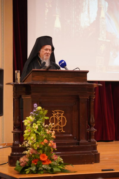 Στην ομιλία του, ο Παναγιώτατος, υπενθύμισε, μεταξύ άλλων, ότι ο άνθρωπος είναι μέρος της Δημιουργίας, και ως εκ τούτου όλοι έχουμε την ευθύνη να δείξουμε το ενδιαφέρον μας για την επιβίωση και τη βιωσιμότητα του πλανήτη μας. Αναφερόμενος στη σημασία του νερού για τη ζωή, είπε ότι αποτελεί υποχρέωσή μας να προστατεύσουμε τους ωκεανούς από τη ρύπανση και την υποβάθμιση. “Το νερό των ωκεανών και των θαλασσών μας παράγει σχεδόν το μισό από το οξυγόνο που αναπνέουμε και καθαρίζει την ατμόσφαιρα από μεγάλο μέρος του διοξειδίου του άνθρακα που παράγουν οι άνθρωποι. Εναπόκειται σε εμάς να εφαρμόσουμε τις κατάλληλες πολιτικές και να επιβάλλουμε περιβαλλοντικούς κανονισμούς”, είπε, και τόνισε ότι “η υγεία των ωκεανών είναι απαραίτητη για την ανθρώπινη ευημερία, τη βιοποικιλότητα και την σταθερότητα του κλίματος του πλανήτη μας”.