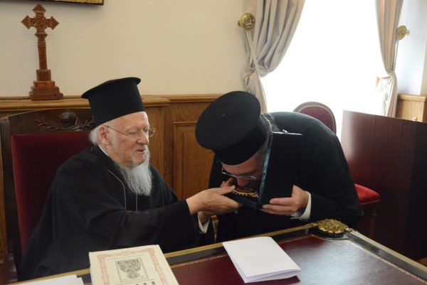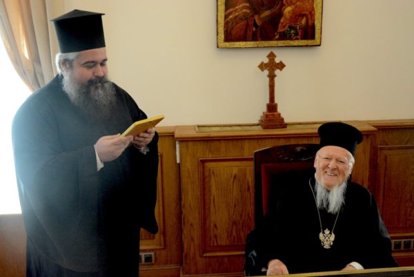 Ο Οικουμενικός Πατριάρχης τον συνεχάρη για την επάξια παμψηφεί εκλογή του και του ευχήθηκε καλλίκαρπη Ποιμαντορία.