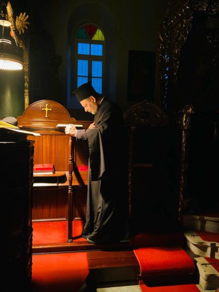 Χοροστατούντος από του παραθρονίου του Καθηγουμένου, Θεοφιλεστάτου Επισκόπου Αραβισσού κ. Κασσιανού, τελέστηκε την Τετάρτη Α’ Εβδομάδος των Νηστειών, 5 Μαρτίου 2025, στο ναΰδριο της Αγίας Τριάδος στη Θεολογική Σχολή της Χάλκης η Θεία Λειτουργία των Προηγιασμένων Τιμίων Δώρων.