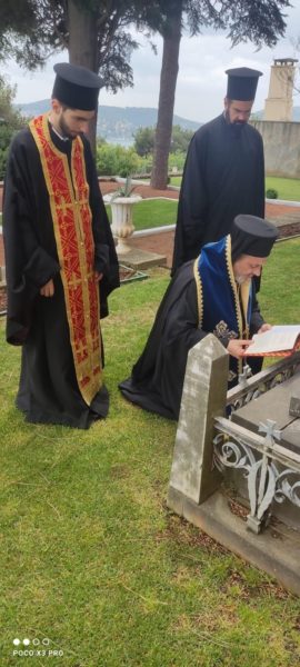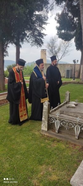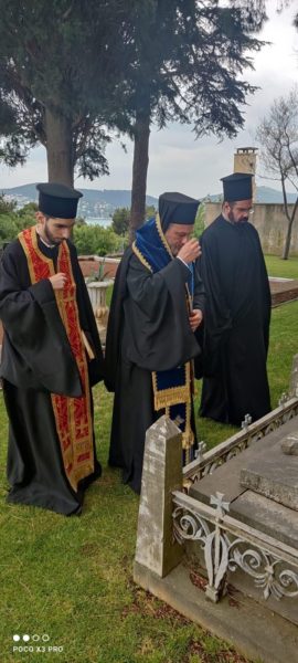 Ακολούθως, ο Καθηγούμενος ανέγνωσε νεκρώσιμο τρισάγιο και επί του όπισθεν του ιερού βήματος κοιμητηρίου της Σχολής, υπέρ αναπαύσεως των εκείσε ενταφιασμένων Πατριαρχών, Αρχιερέων, Σχολαρχών και Καθηγητών της Σχολής.