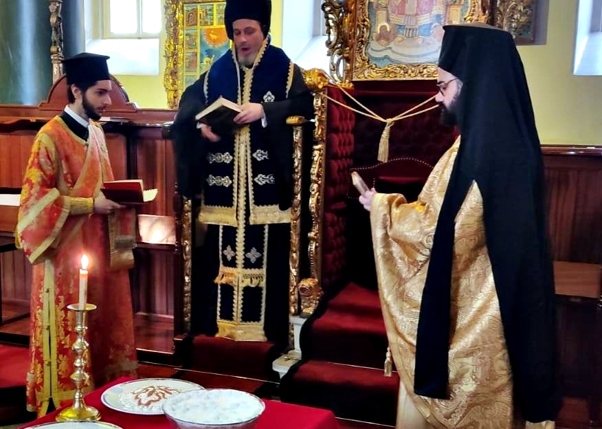 Μετά το πέρας της Θείας Λειτουργίας ανεγνώσθη υπό του Καθηγούμενου τρισάγιο υπέρ των απ’ αιώνος κεκοιμημένων και ευλογήθηκαν τα προσκομισθέντα κόλλυβα.
