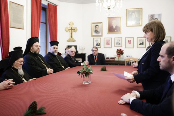 Η Πρόεδρος της Δημοκρατίας Κατερίνα Σακελλαροπούλου, στο πλαίσιο της επίσκεψής της στην Ελβετία, συναντήθηκε με τον Παναγιώτατο στο Ορθόδοξο Κέντρο του Οικουμενικού Πατριαρχείου, στο Chambésy.