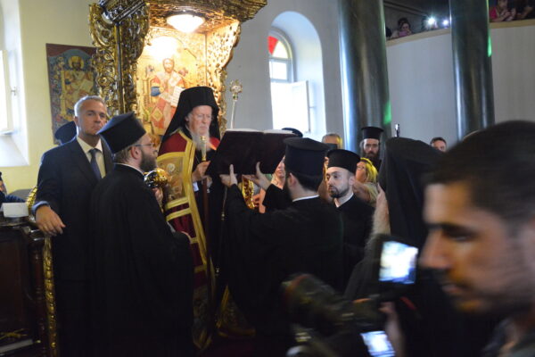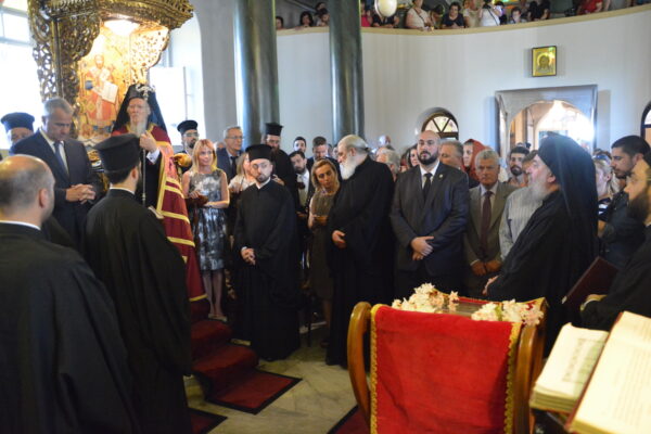 Προηγήθηκε ο Μέγας Εσπερινός της Κυριακής των Αγίων Πατέρων και της μνήμης του Αγίου Κυρίλλου, Πατριάρχου Αλεξανδρείας, κατά τον οποίο χοροστάτησε ο Οικουμενικός Πατριάρχης και παρέστησαν συμπροσευχόμενοι οι Σεβασμιώτατοι Αρχιερείς, Γέρων Δέρκων Απόστολος, Γέρων Πριγκηποννήσων Δημήτριος, Τρανουπόλεως Γερμανός, Μύρων Χρυσόστομος, Ικονίου Θεόληπτος, Αμερικής Ελπιδοφόρος, ο και προηγούμενος της Μονής, Σηλυβρίας Μάξιμος, Αδριανουπόλεως Αμφιλόχιος, Αυστραλίας Μακάριος, ο Επίτροπος του Παναγίου Τάφου στην Πόλη, Αρχιεπίσκοπος Ανθηδώνος Νεκτάριος, οι Επίσκοποι Λεύκης Ευμένιος, Δορυλαίου Νίκανδρος, Αμορίου Νικηφόρος, Αλικαρνασσού Αδριανός, Αραβυσσού Κασσιανός, Τολιάρας και Νοτίου Μαδαγασκάρης Πρόδρομος, εκ του Πατριαρχείου Αλεξανδρείας, ο Αρχιμανδρίτης Αθανάσιος, Ηγούμενος της Ι.Μ.Αγίων Τεσσαράκοντα Τιφλίδος, εκ του Πατριαρχείου Γεωργίας, πλήθος κληρικών από την Ελλάδα και άλλες χώρες, Αγιορείτες πατέρες και άλλοι Μοναχοί, Άρχοντες Οφφικιάλιοι και απόφοιτοι της Ι.Θεολογικής Σχολής, εκπρόσωποι των τοπικών Αρχών, ο Βουλευτής και πρώην Υπουργός Μαυρουδής (Μάκης) Βορίδης, εκπρόσωπος του Προέδρου της ΝΔ, ο Κοσμήτορας της Θεολογικής Σχολής Θεσσαλονίκης Καθ.Θεόδωρος Γιάγκου, Αντιπροσωπείες από τις Εκκλησιαστικές Ακαδημίες Αθηνών και Θεσσαλονίκης και από το Διορθόδοξο Κέντρο της Εκκλησίας της Ελλάδος, Πανεπιστημιακοί Καθηγητές από διάφορες Σχολές της Ελλάδος, Αντιπροσωπεία της Βιβλιοθήκης της Βουλής των Ελλήνων, καθώς και πλήθος πιστών από την Πόλη και την Σμύρνη, μεταξύ των οποίων και μέλη της ρωσικής, γεωργιανής και ουκρανικής παροικίας, αλλά και προσκυνητές από την Αθήνα, την Θεσσαλονίκη, τη Μυτιλήνη, από άλλες περιοχές της Ελλάδος, και από άλλες χώρες.