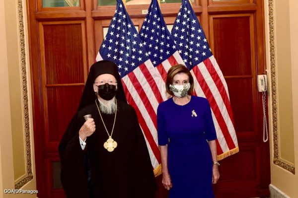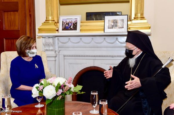 Τη σειρά σημαντικών επαφών, οι οποίες επιβεβαιώνουν τη θέση και τη σημασία την οποία κατέχει στο διεθνές προσκήνιο το Οικουμενικό Πατριαρχείο, συνεχίζει ο Οικουμενικός Πατριάρχης κ.κ. Βαρθολομαίος στις Ηνωμένες Πολιτείες Αμερικής. Μετά τις συναντήσεις της Δευτέρας με Τζο Μπάιντεν και Άντονι Μπλίνκεν χθες ο Παναγιώτατος είχε κατ’ ιδίαν συνάντηση στο Κογκρέσο με την πρόεδρο της βουλής των αντιπροσώπων, Νάνσι Πελόζι.
