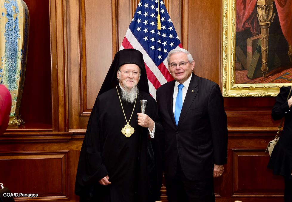 Την ικανοποίηση του για τη σύντομη συνάντηση που είχε με τον Οικουμενικό Πατριάρχη Βαρθολομαίο στο Καπιτώλιο εξέφρασε ο πρόεδρος της Επιτροπής Εξωτερικών Σχέσεων της Γερουσίας Ρόμπερτ Μενέντεζ. Ο Αμερικανός γερουσιαστής είχε την ευκαιρία να συνομιλήσει με τον Πατριάρχη στο πλαίσιο του μεσημεριανού γεύματος που παρέθεσε η πρόεδρο της βουλής των αντιπροσώπων, Νάνσι Πελόζι, προς τιμήν του κ.κ. Βαρθολομαίου.