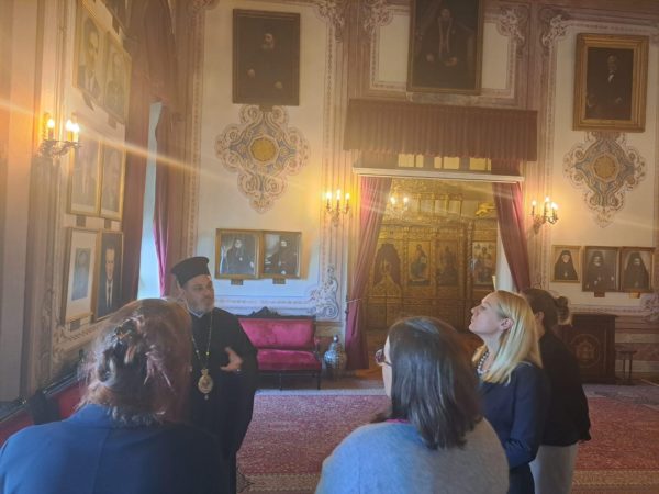 Οι Αμερικανοί διπλωμάτες έγιναν δεκτοί από τον Καθηγούμενο, Θεοφιλέστατο Επίσκοπο Αραβισσού κ. Κασσιανό, ο οποίος τους καλωσόρισε στο ιστορικό πνευματικό καθίδρυμα του Οικουμενικού Πατριαρχείου, αναφερόμενος στην μακρά ιστορία και την προσφορά του στα θεολογικά γράμματα και την Ορθόδοξη Εκκλησία, αλλά και στην αναγκαιότητα της επαναλειτουργίας του, για την οποία οι Αμερικανοί αξιωματούχοι επέδειξαν ιδιαίτερο ενδιαφέρον.
