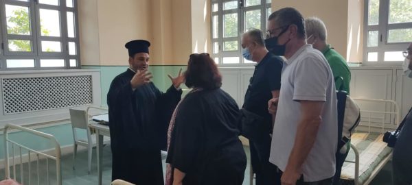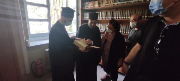 Στη συνέχεια, οι επισκέπτες ξεναγήθηκαν από τον Καθηγούμενο στις αίθουσες διδασκαλίας, το Συνοδικό, τους μαθητικούς κοιτώνες, την βιβλιοθήκη και τους λοιπούς χώρους της Σχολής.
