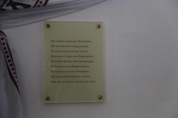 Επόμενη ευλογητική επίσκεψη του Οικ. Πατριάρχη ήταν η Εφορεία Αρχαιοτήτων Θεσσαλονίκης όπου τέλεσε τα θυρανοίξια του ιερού παρεκκλησίου Αγ. Ελευθερίου πρ. Φυλακών Επταπυργίου.