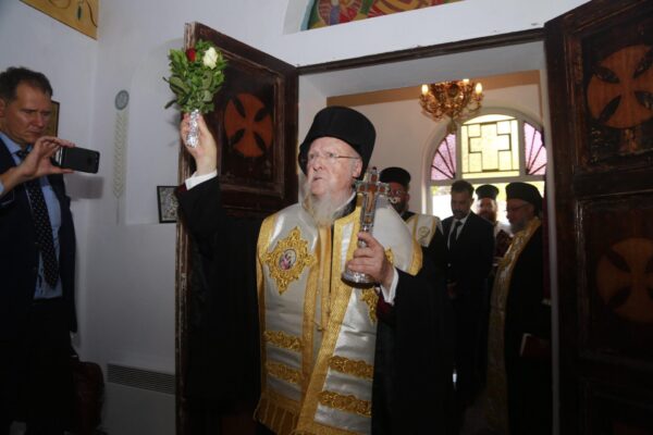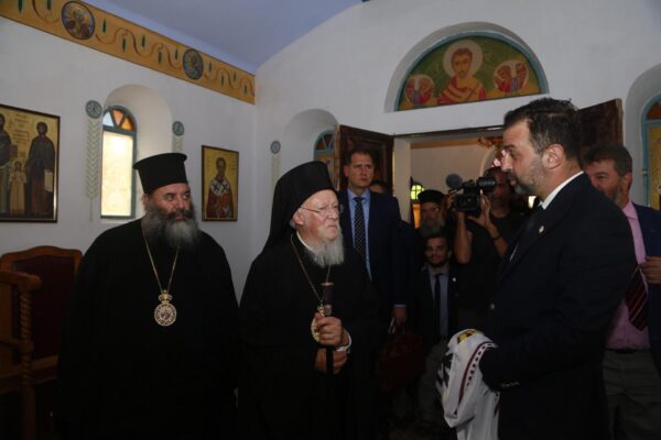 Τον Παναγιώτατο υποδέχτηκαν ο ηγούμενος της Μονής Θεοφιλέστατος Επίσκοπος Αμορίου κ. Νικηφόρος, ο Διευθυντής του Πατριαρχικού Ιδρύματος Πατερικών Μελετών κ. Συμεών Πασχαλίδης, Αρχιερείς του Οικ.Θρονου, Ακαδημαϊκοί δάσκαλοι, και ευλαβείς χριστιανοί.