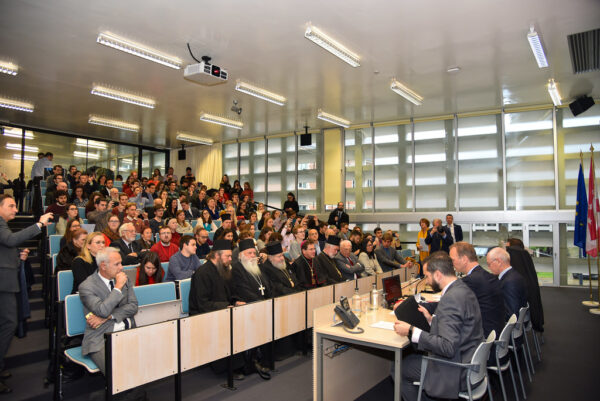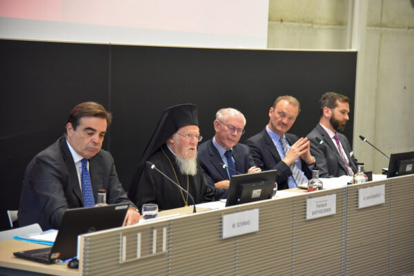 Ο Παναγιώτατος ευρισκόμενος στο Βέλγιο, στα πλαίσια των εορτών του Χρυσού Ιωβηλαίου της Ιεράς Μητροπόλεως Βελγίου, έλαβε πρόσκληση να επισκεφθεί, να τιμήσει με την παρουσία του και να μιλήσει στους φοιτητές του Ευρωπαϊκού Κολλεγίου, ενός Ανώτατου Εκπαιδευτικού Ιδρύματος, το οποίο προετοιμάζει κατ΄ ουσίαν τα αυριανά στελέχη των Ευρωπαϊκών θεσμών. Η ομιλία διεξήχθη στα Αγγλικά, εν μέσω πλήθους φοιτητών και λοιπών ενδιαφερομένων για το θέμα, ενώ προηγήθηκε θερμή υποδοχή και παράθεση γεύματος προς τιμή του Πατριάρχου από τον Πρύτανη του Κολλεγίου.