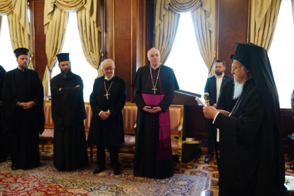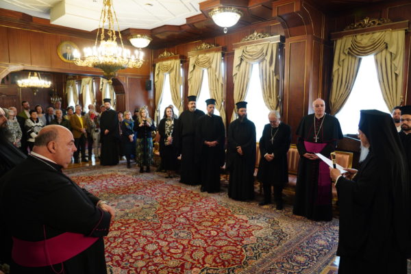 Ο Παναγιώτατος Οικουμενικός Πατριάρχης κ.κ. Βαρθολομαίος δέχθηκε σήμερα, Πέμπτη, 11 Μαΐου 2023, στο Φανάρι, τον Μητροπολίτη Αυστρίας κ. Αρσένιο, με τον Επίσκοπο Απαμείας κ. Παΐσιο, καθώς και τον Ρωμαιοκαθολικό Επίσκοπο Eisenstadt Δρ. Ägidius Zsifkovics, τον πρώην Ευαγγελικό Επίσκοπο Burgenland κ. Manfred Koch, και όμιλο Ορθοδόξων, Ρωμαιοκαθολικών και Προτεσταντών πιστών από την Αυστρία, οι οποίοι πραγματοποιούν προσκυνηματική επίσκεψη στην Πόλη και την Καππαδοκία.