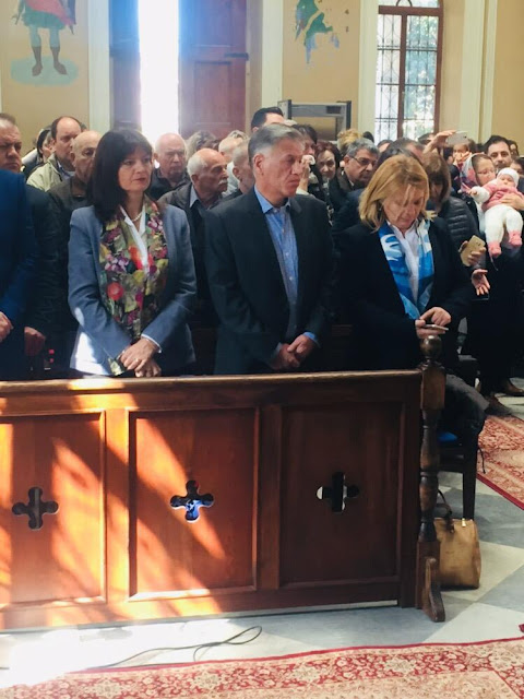 Εἰς τάς Ἱ. Ἀκολουθίας παρέστησαν ἡ Εὐγεν. κ. Ἀργυρώ Παπούλια, Γεν. Πρόξενος τῆς Ἑλλάδος, ἡ Εὐγεν. κ. Φανή Παπαθωμᾶ, Ἀντιπεριφερειάρχης Π.Ε. Βοιωτίας, ὁ Ἐντιμ. κ. Εὐθύμιος Ἀγγελόπουλος, ἐπί κεφαλῆς τῆς Ἑλληνικῆς Ἀποστολῆς εἰς τήν ἐνταῦθα ἕδραν τοῦ ΝΑΤΟ, Πρόεδροι καί μέλη Μικρασιατικῶν Συλλόγων καί προσκυνηταί ἐκ τῶν νήσων τοῦ Ἀνατολικοῦ Αἰγαίου, Δωδεκανήσου, Ἀθηνῶν, Μακεδονίας κ.ἄ. .