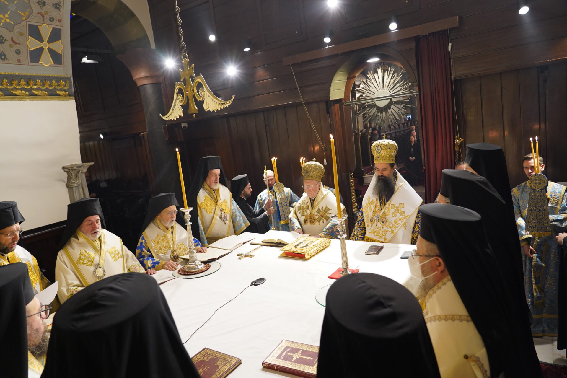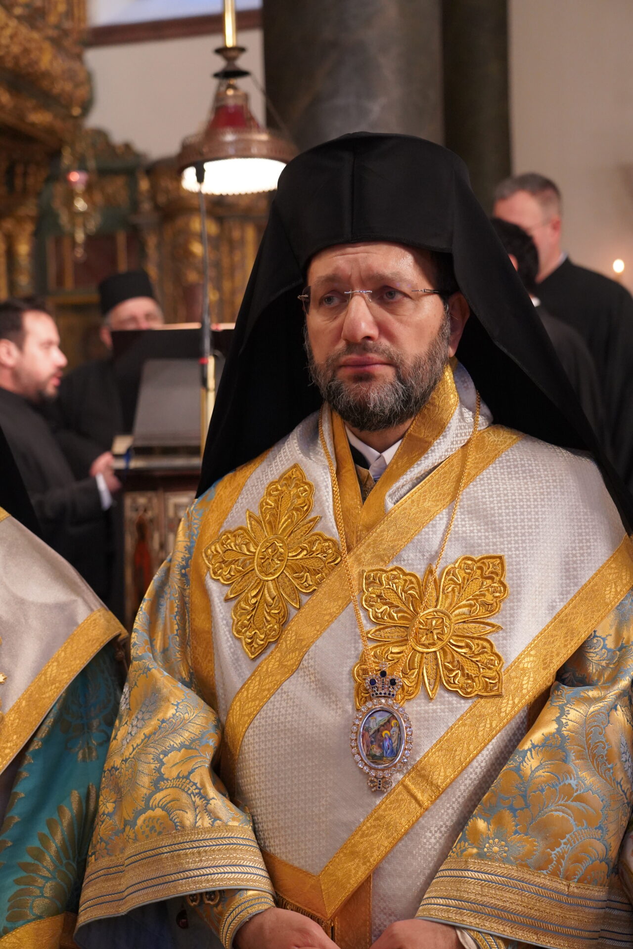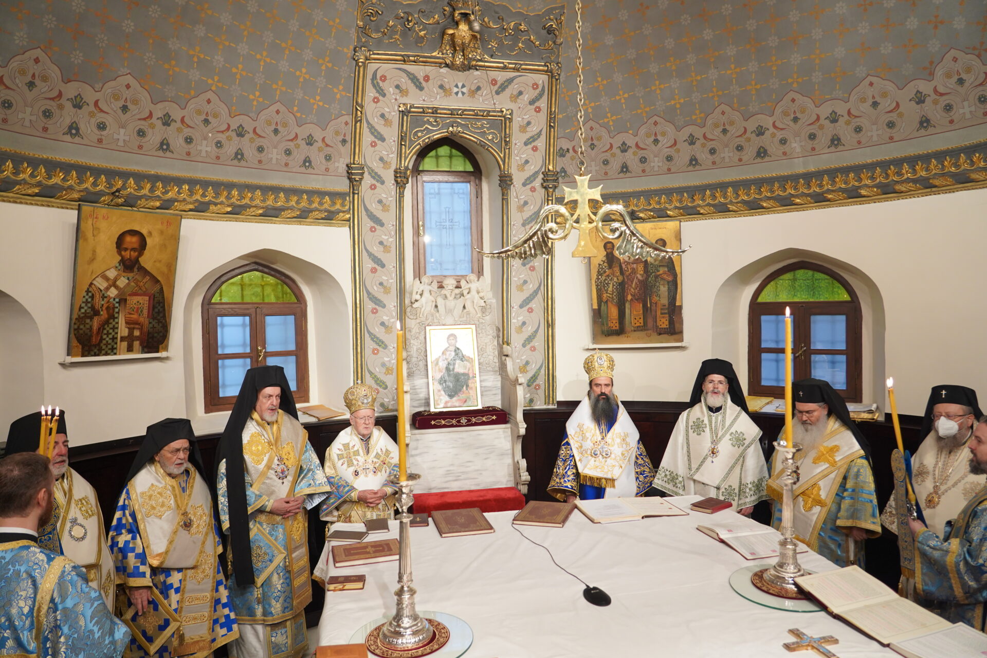 Στην Θεία Λειτουργία συμμετείχαν οι Σεβ. Αρχιερείς Γέρων Χαλκηδόνος κ. Εμμανουήλ, ο εν Δυτική και Κεντρώα Ευρώπη κ. Αντώνιος, Μύρων κ. Χρυσόστομος, Βάρνης και Μεγάλης Πρεσλάβας κ. Ιωάννης, Θυατείρων και Μεγάλης Βρεταννίας κ. Νικήτας, Ρούσσης κ. Ναούμ, Καλλιουπόλεως και Μαδύτου κ. Στέφανος, Στάρας-Ζαγόρας κ. Κυπριανός, Κυδωνιών κ. Αθηναγόρας, Βράτσης κ. Γρηγόριος, Σαράντα Εκκλησιών κ. Ανδρέας και Βιδύνης κ. Παχώμιος.
