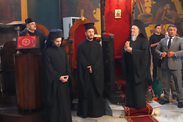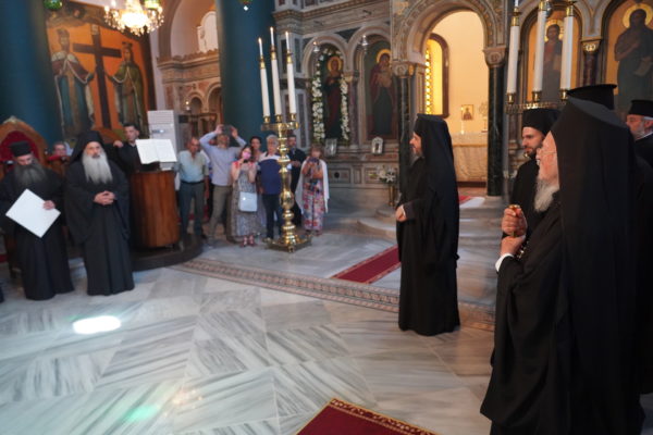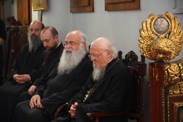 Προηγουμένως, τον Παναγιώτατο προσφώνησε ο Σεβασμιώτατος Μητροπολίτης Σηλυβρίας κ. Μάξιμος, Επόπτης της Περιφερείας Υψωμαθείων, και ακολούθως η Πρόεδρος της Εκκλησιαστικής Επιτροπής κ. Αλεξάνδρα Τσιτσέκογλου, ενώ ο Σεβασμιώτατος Μητροπολίτης Σταγών και Μετεώρων εξέφρασε τις ευχαριστίες του προς τον Πατριάρχη για την θερμή υποδοχή και την ευλογία να χοροστατήσει στον πανηγυρίζοντα Ναό, του προσέφερε δε αντίγραφο του Ευαγγελισταρίου του Οσίου Ιωάσαφ του Μετεωρίτου, δευτέρου κτήτορος της Μονής του Μεγάλου Μετεώρου.