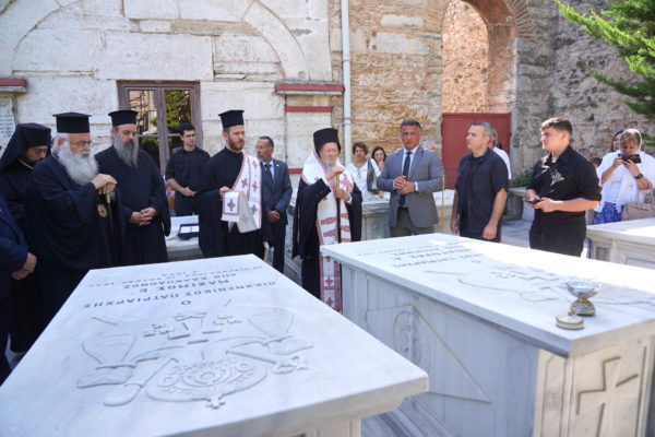 Ο Παναγιώτατος Οικουμενικός Πατριάρχης κ.κ. Βαρθολομαίος, την Κυριακή, 7 Ιουλίου 2024, συμπροσευχήθηκε, μαζί με τον Μακαριώτατο Αρχιεπίσκοπο Νέας Ιουστινιανής και πάσης Κύπρου κ.κ. Γεώργιο, κατά τη Θεία Λειτουργία, στην Ιερά Μονή Ζωοδόχου Πηγής Βαλουκλή. Αμέσως μετά, καλωσόρισε εγκαρδίως τον Μακαριώτατο, ο οποίος μαζί με όμιλο προσκυνητών από την Μεγαλόνησο πραγματοποίησαν τις προηγούμενες ημέρες προσκυνηματική επίσκεψη στην Καππαδοκία, στην Σηλυβρία και στην Πόλη. Απευθυνόμενος στους προσκυνητές, τους εξέφρασε την αγάπη του Οικουμενικού Πατριαρχείου και απένειμε προς αυτούς και τους οικείους τους την Πατριαρχική ευλογία και τις πατρικές ευχές του.