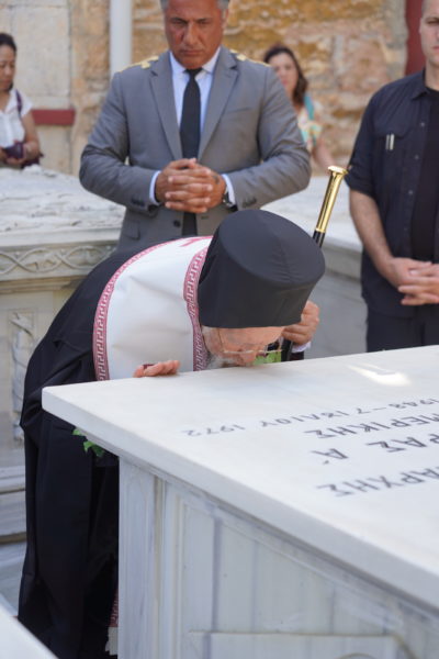 Οι δύο Προκαθήμενοι είχαν κατ’ ίδιαν εγκάρδια συνάντηση στο Ηγουμενείο της Μονής, και στη συνέχεια, ο Παναγιώτατος, παρουσία του Μακαριωτάτου και των προσκυνητών, τέλεσε Τρισάγιο στον Τάφο του αοιδίμου προκατόχου Του Πατριάρχου Αθηναγόρου, με την ευκαιρία της σημερινής 52ης επετείου από την εκδημία του.