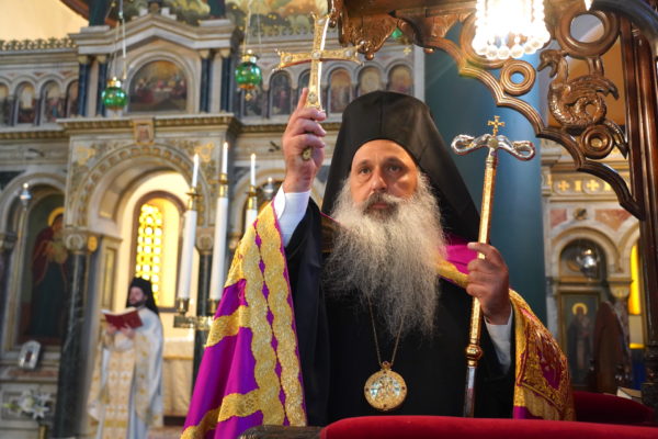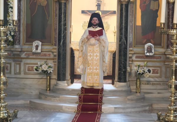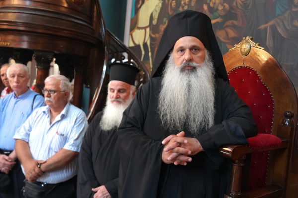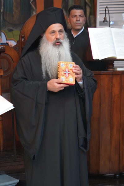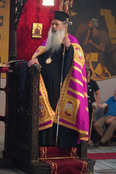 Στη Θεία Λειτουργία, ύστερα από προτροπή του Παναγιωτάτου, χοροστάτησε ο Σεβ. Μητροπολίτης Σταγών και Μετεώρων κ. Θεόκλητος, ο οποίος επισκέπτεται την Πόλη μαζί με προσκυνητές από την εκκλησιαστική επαρχία του.