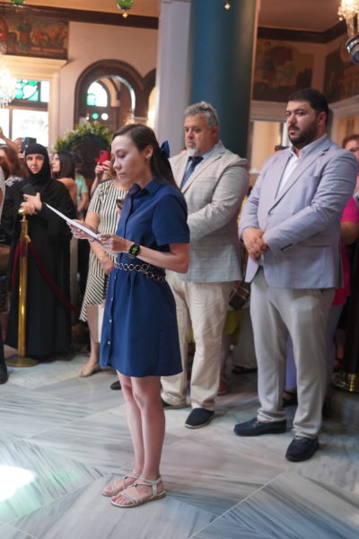 Στη Θεία Λειτουργία, ύστερα από προτροπή του Παναγιωτάτου, χοροστάτησε ο Σεβ. Μητροπολίτης Σταγών και Μετεώρων κ. Θεόκλητος, ο οποίος επισκέπτεται την Πόλη μαζί με προσκυνητές από την εκκλησιαστική επαρχία του.