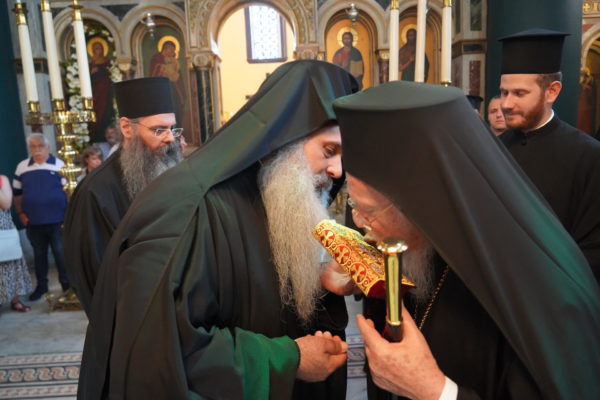 Στην ομιλία του, αμέσως μετά, ο Παναγιώτατος καλωσόρισε με θερμούς λόγους τον Ιεράρχη της Αγιωτάτης Εκκλησίας της Ελλάδος και όλους τους προσκυνητές.