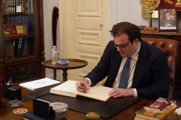 Ήταν η πρώτη επίσκεψη Υπουργού Παιδείας και Θρησκευμάτων στο Γραφείο του Πατριαρχείου στην Αθήνα και για τον λόγο αυτό ο κ. Υπουργός υπέγραψε στο σχετικό βιβλίο επισκεπτών.
