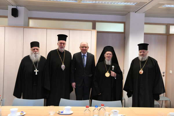 Εν συνεχεία ο Οικουμενικός Πατριάρχης επισκέφθηκε με την Συνοδεία του, στο Γραφείο του, τον Αντιπρόεδρο της Κυβερνήσεως κ. Koen Geens, με τον οποίο είχαν ευχάριστη και μεγάλης διάρκειας συζήτηση. Ο κ. Geens ως Υπουργός Δικαιοσύνης επίσης είναι ο αρμόδιος Υπουργός για τις Θρησκείες. Ο Οικουμενικός Πατριάρχης ευχαρίστησε ακόμη μια φορά τον Αντιπρόεδρο της Κυβερνήσεως και τους συνεργάτες του, που ήταν παρόντες, για όσα φροντίζουν υπέρ της Ορθόδοξης Εκκλησίας στο Βέλγιο. Ακολούθησε συζήτηση πάνω σε θέματα κοινού ενδιαφέροντος. Τέλος ο Οικουμενικός Πατριάρχης προσεκάλεσε τον Αντιπρόεδρο της Κυβερνήσεως στο Φανάρι, την έδρα του Οικουμενικού Πατριαρχείου Κωνσταντινουπόλεως.