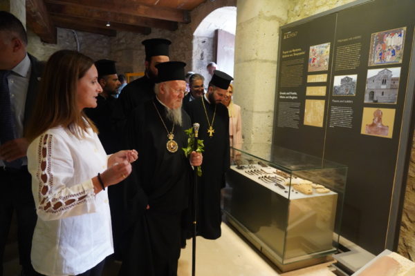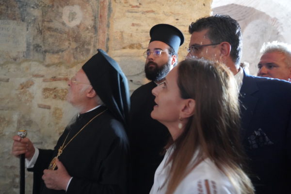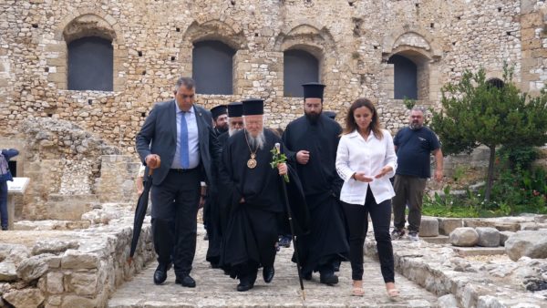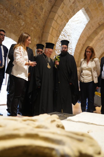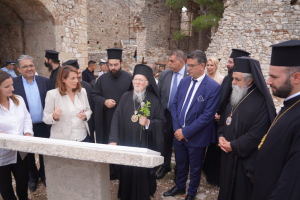 Ο Οικουμενικός Πατριάρχης στον Ιερό Ναό Αγίου Δημητρίου Λεχαινών, στο Κάστρο Χλεμούτσι, όπου ξεναγήθηκε από τους υπευθύνους αρχαιολόγους, και στην Ιερά Μονή Βλαχερνών Κυλλήνης