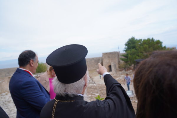 Ο Παναγιώτατος στη συνέχεια, επισκέφθηκε το ιστορικό Κάστρο Χλεμούτσι, όπου ξεναγήθηκε από τους εκπροσώπους της Εφορείας Αρχαιοτήτων Ηλείας, ενώ έδειξε ιδιαίτερο ενδιαφέρον για τα εκθέματα και την ιστορία του μνημείου.