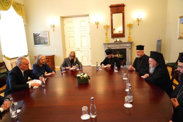 Αυτή είναι η πρώτη επίσκεψη που πραγματοποιεί ο Οικουμενικός Πατριάρχης κ.κ. Βαρθολομαίος στη Λιθουανία. Η εξελίξεις γύρο από το εκκλησιαστικό ζήτημα της χώρας με τη νέα σελίδα που ανοίγει για τους Ορθοδόξους, κυριάρχησαν στη συνάντηση που είχε ο Παναγιώτατος, λίγη ώρα μετά την υπογραφή της συμφωνίας, με τον Πρόεδρο της Δημοκρατίας της Λιθουανίας, Gitanas Nausėda, με την συζήτηση να επεκτείνεται και για τον πόλεμο στην Ουκρανία. Όπως τόνισε ο Πρόεδρος της χώρας, ο οποίος προσκλήθηκε από τον Πατριάρχη στο Φανάρι, η χώρα του φιλοξένησε περισσότερους από 70.000 πρόσφυγες πολέμου από την Ουκρανία.