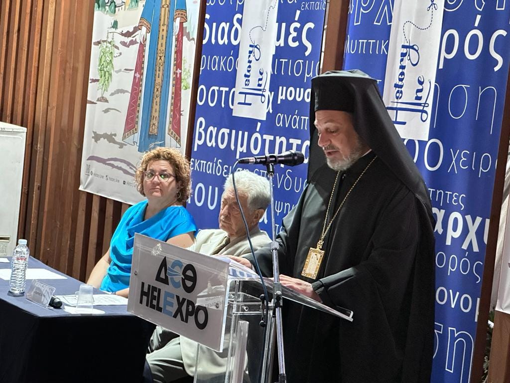Στο πλαίσιο της Διεθνούς Εκθέσεως Θεσσαλονίκης πραγματοποιήθηκαν τη Δευτέρα 11 Σεπτεμβρίου 2023, στο περίπτερο του Εμπορικού Συλλόγου Θεσσαλονίκης, τα εγκαίνια της έκθεσης “Χάλκη Βυζαντίδος Κόρη” από τον Θεοφιλέστατο Επίσκοπο Αραβισσού κ. Κασσιανό, Καθηγούμενο της Ιεράς Μονής Αγίας Τριάδος Χάλκης, εκπρόσωπο του Παναγιωτάτου Οικουμενικού Πατριάρχου κ.κ. Βαρθολομαίου, τον Δήμαρχο Θεσσαλονίκης κ. Κωνσταντίνο Ζέρβα και τον Πρόεδρο του Εμπορικού Συλλόγου Θεσσαλονίκης κ. Παντελεήμονα Φιλιππίδη.