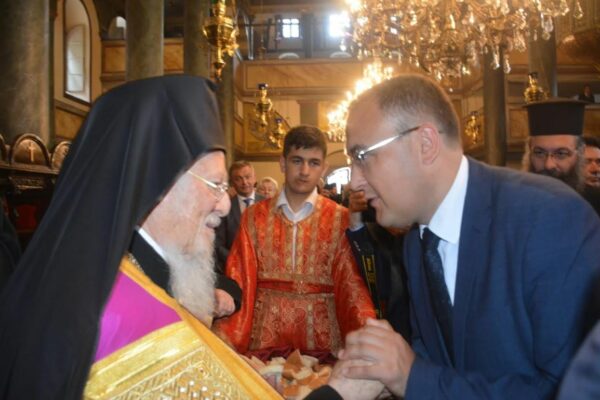 Ἐν τῷ τέλει, τήν Α. Θ. Παναγιότητα προσεφώνησε κατά τό ἔθος ἐκμέρους τῆς σεβασμίας Ἱεραρχίας τοῦ Θρόνου ὁ α´ τῇ τάξει αὐτῆς Μητροπολίτης Γέρων Νικαίας κ. Κωνσταντῖνος καίἀντεφώνησεν ὁ Πατριάρχης, ἀναφερθείς εἰς τάς πρωτοβουλίας τοῦ Οἰκουμενικοῦ Θρόνου κατά τό διαρρεῦσαν ἀπό τῶν περυσινῶν ὀνομαστηρίων Του ἕως σήμερον διάστημα, κυριωτέρα τῶν ὁποίων ἦτο ἡ χορήγησις τοῦ ἀυτοκεφάλου καθεστῶτος εἰς τήν Ἐκκλησίαν τῆς Οὐκρανίας, προϊόν τῆς ἀγαπητικῆς καί ποιμαντικῆς μερίμνης τῆς Μητρός Ἐκκλησίας πρός τόν χειμαζόμενον, λόγῳ ποικίλων διασπάσεων, εὐσεβῆ οὐκρανικόν λαόν.