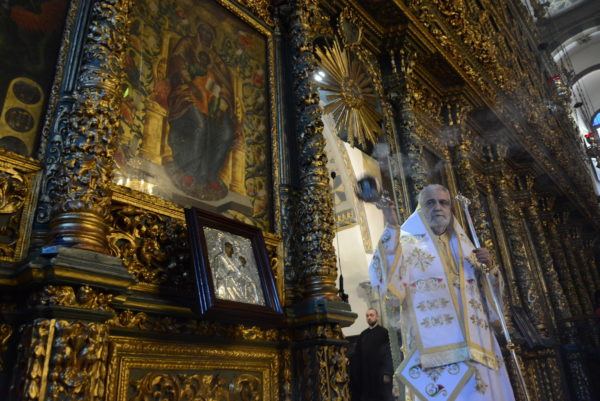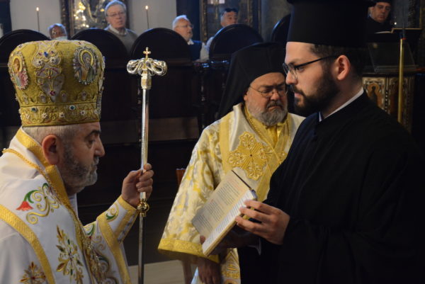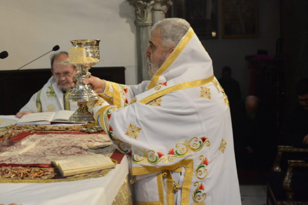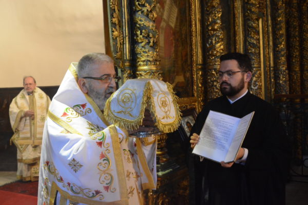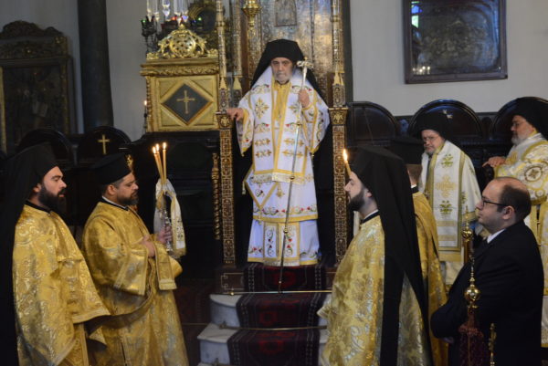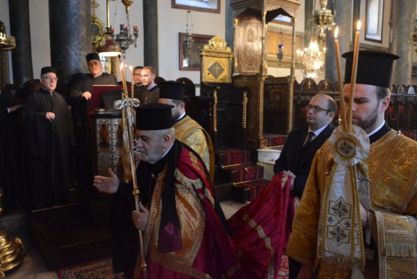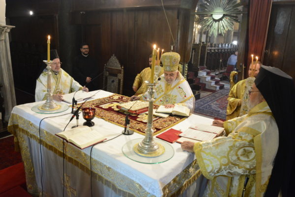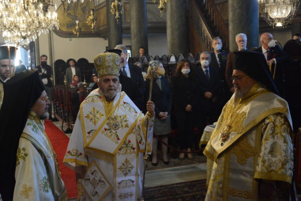Εκκλησιάστηκαν οι Σεβ. Μητροπολίτες Μύρων κ. Χρυσόστομος και Προύσης κ. Ιωακείμ, οι Θεοφιλ. Επίσκοποι Αλικαρνασσού κ. Αδριανός, Αραβισσού κ. Κασσιανός και Τράλλεων κ. Βενιαμίν, ο Πανοσιολ. Αρχιμανδρίτης κ. Πέτρος, Ηγούμενος της Ι. Μονής Διονυσίου Αγίου Όρους, η Ευγεν. κ. Γεωργία Σουλτανοπούλου, Γενική Πρόξενος στην Πόλη, με τον σύζυγό της Εξοχ. κ. Ιωάννη Ραπτάκη, Πρέσβη της Ελλάδος στο Ηνωμένο Βασίλειο, Άρχοντες Οφφικιάλιοι της Μ.τ.Χ.Ε., υπό τον Γενικό Γραμματέα της Αδελφότητός “Παναγία η Παμμακάριστος”, Άρχοντα Διδάσκαλο του Γένους κ. Κωνσταντίνο Δεληκωσταντή, συγγενείς και φίλοι του αειμνήστου Αρχιερέως, καθώς και πιστοί από την Πόλη και προσκυνητές από το εξωτερικό.
