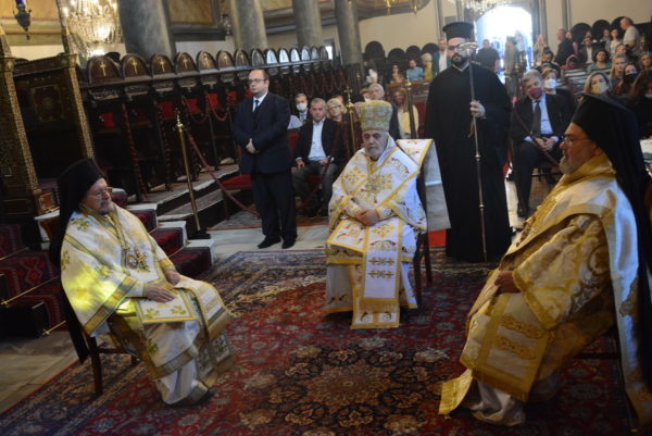 Ο Παναγιώτατος Οικουμενικός Πατριάρχης κ.κ. Βαρθολομαίος, παρέστη συμπροσευχόμενος από το Ιερό Βήμα του Π. Πατριαρχικού Ναού στην Τρισαρχιερατική Θεία Λειτουργία του Σαββάτου, 21 Μαΐου 2022, για την εορτή εορτή των Αγίων ενδόξων, μεγάλων, θεοστέπτων και Ισαποστόλων Βασιλέων Κωνσταντίνου και Ελένης.