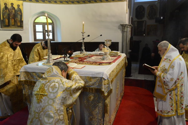 Της Θ. Λειτουργίας προεξήρχε ο Σεβ. Μητροπολίτης Γέρων Δέρκων κ. Απόστολος, και συλλειτούργησαν οι Σεβ. Μητροπολίτες Μυριοφύτου και Περιστάσεως κ. Ειρηναίος και Ικονίου κ. Θεόληπτος, και στο τέλος αυτής τελέστηκε το τεσσαρακονθήμερο Μνημόσυνο υπέρ αναπαύσεως της ψυχής του μακαριστού Μητροπολίτου Τρανουπόλεως κυρού Γερμανού.
