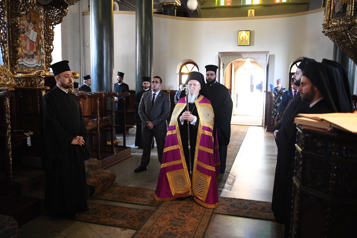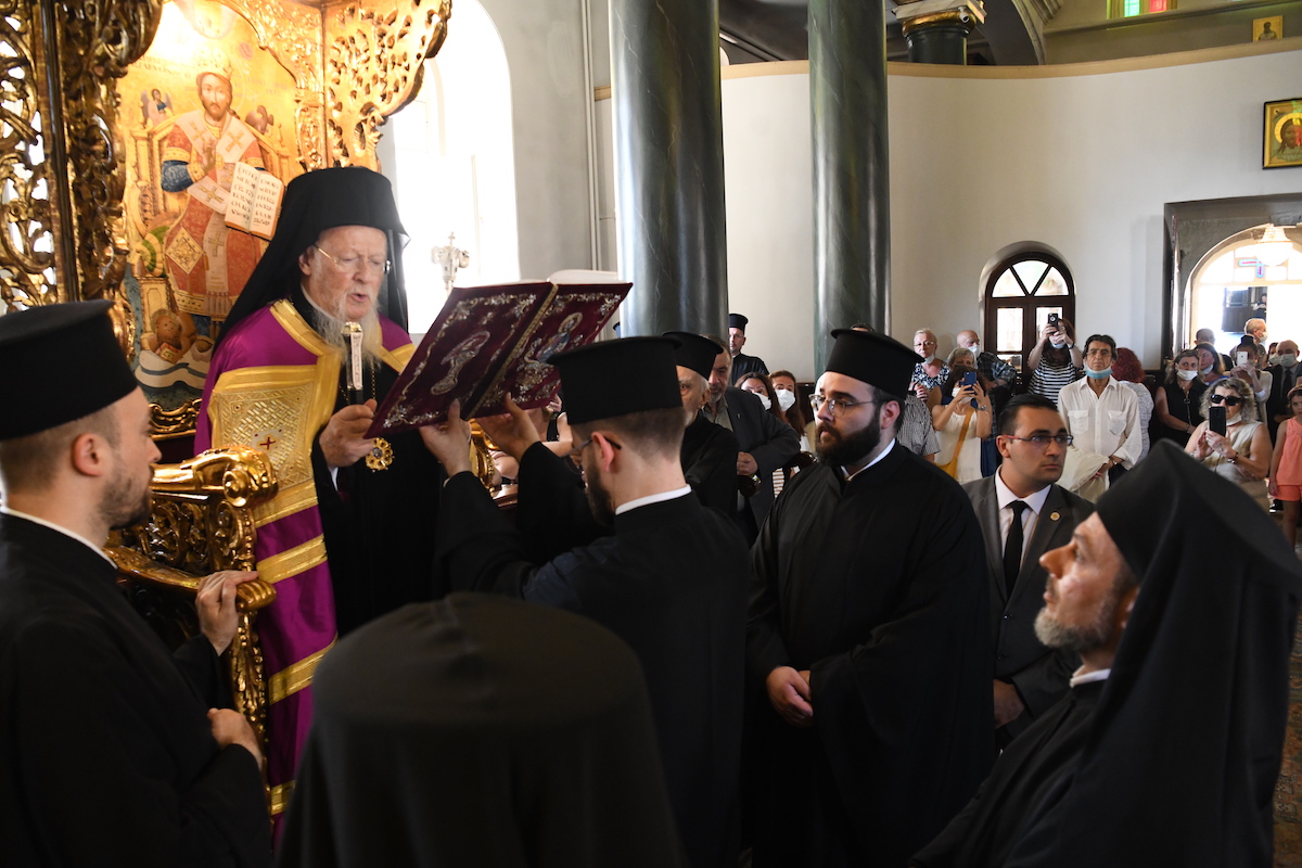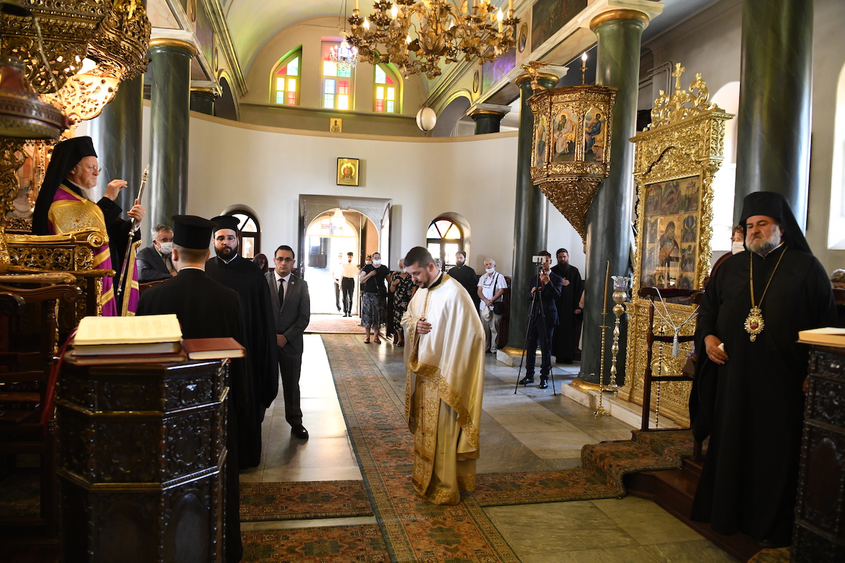 Στην Θεία Λειτουργία, που τελέστηκε στο Καθολικό της Ι. Μονής, χοροστάτησε ο Οικουμενικός Πατριάρχης, και παρέστησαν συμπροσευχόμενοι οι Σεβασμιώτατοι Μητροπολίτες Γέρων Δέρκων κ. Απόστολος, Γέρων Πριγκηποννήσων κ. Δημήτριος, Τρανουπόλεως κ. Γερμανός, Μύρων κ. Χρυσόστομος, Καλλιουπόλεως και Μαδύτου κ. Στέφανος, Κυδωνιών κ. Αθηναγόρας, Σηλυβρίας κ. Μάξιμος, ο Σεβ. Αρχιεπίσκοπος Ανθηδώνος Νεκτάριος, Επίτροπος του Παναγίου Τάφου, η Ευγεν. Γενική Πρόξενος της Ελλάδος στην Πόλη κυρία Γεωργία Σουλτανοπούλου, Άρχοντες Οφφικιάλιοι και πιστοί από τα νησιά και την Πόλη.